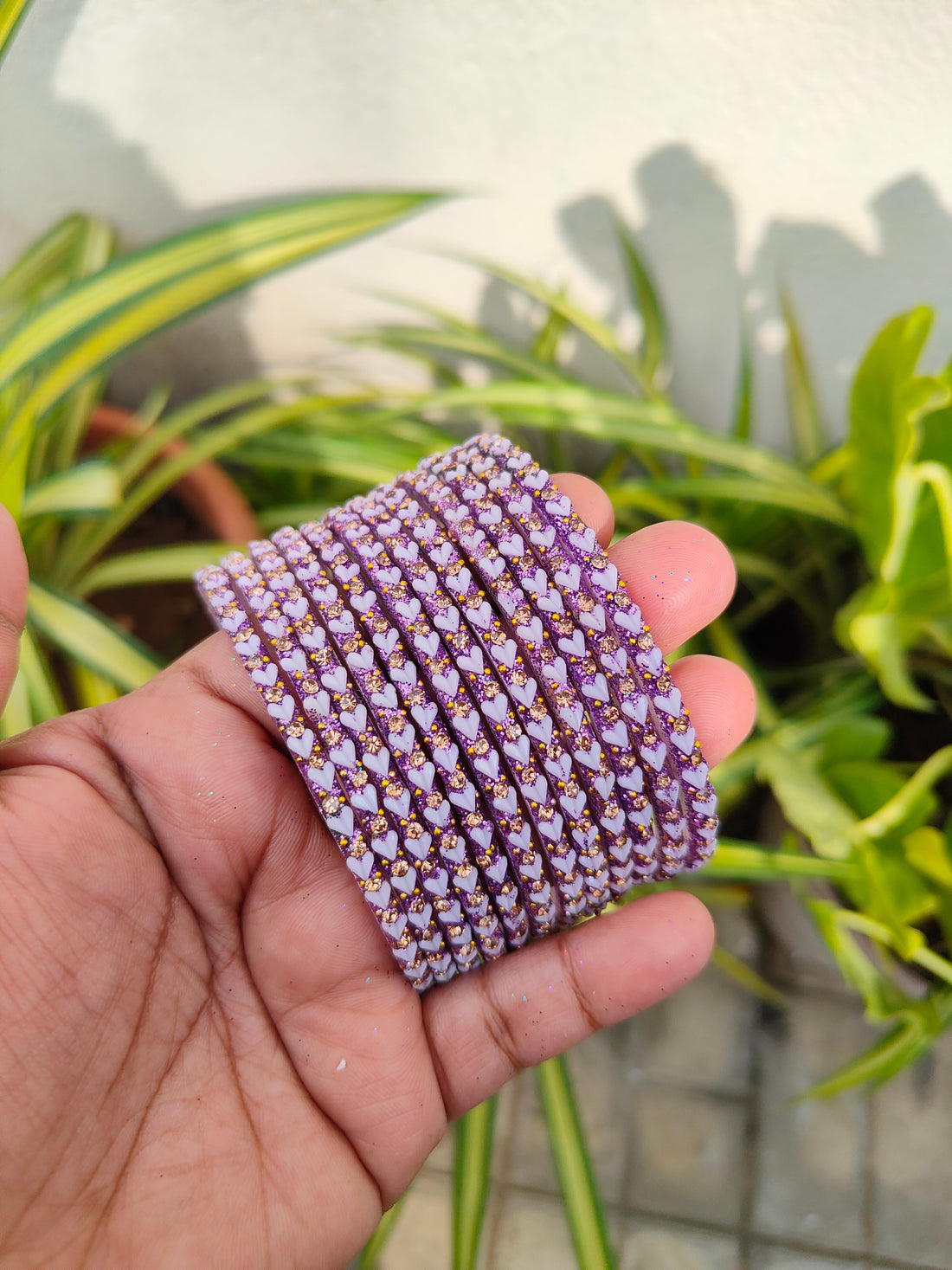 Heart Model Glass Bangles-Lavender