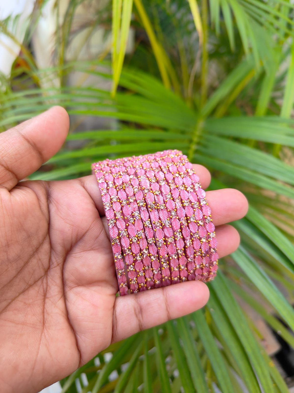 Leaf model glass bangles-Onion pink