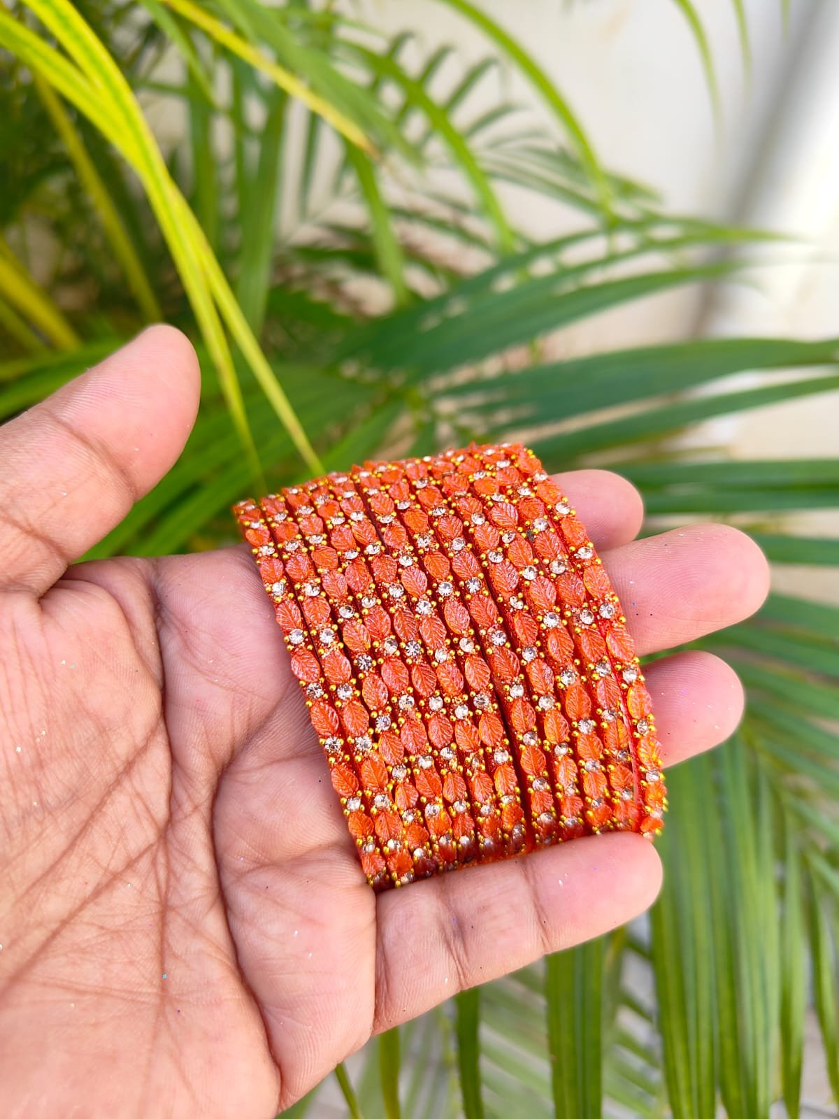 Leaf model glass bangles-Orange